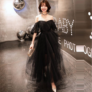 Gothic Inspired Black Boat Neck Bridal Dress Backless Off The Shoulder  - Regular price