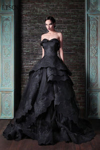 Stunning Corset Gothic Black Bridal Dress Vintage Features Tiered Ruffles And Lace Ball Gown Skirt With Sweep Train And Tie Up Back  - Regular price