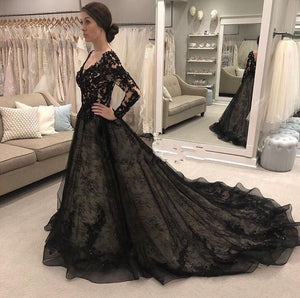 Beautiful Alternative/Gothic Dress Ball Gown V-neck Long Sleeves Tulle And Lace Appliques